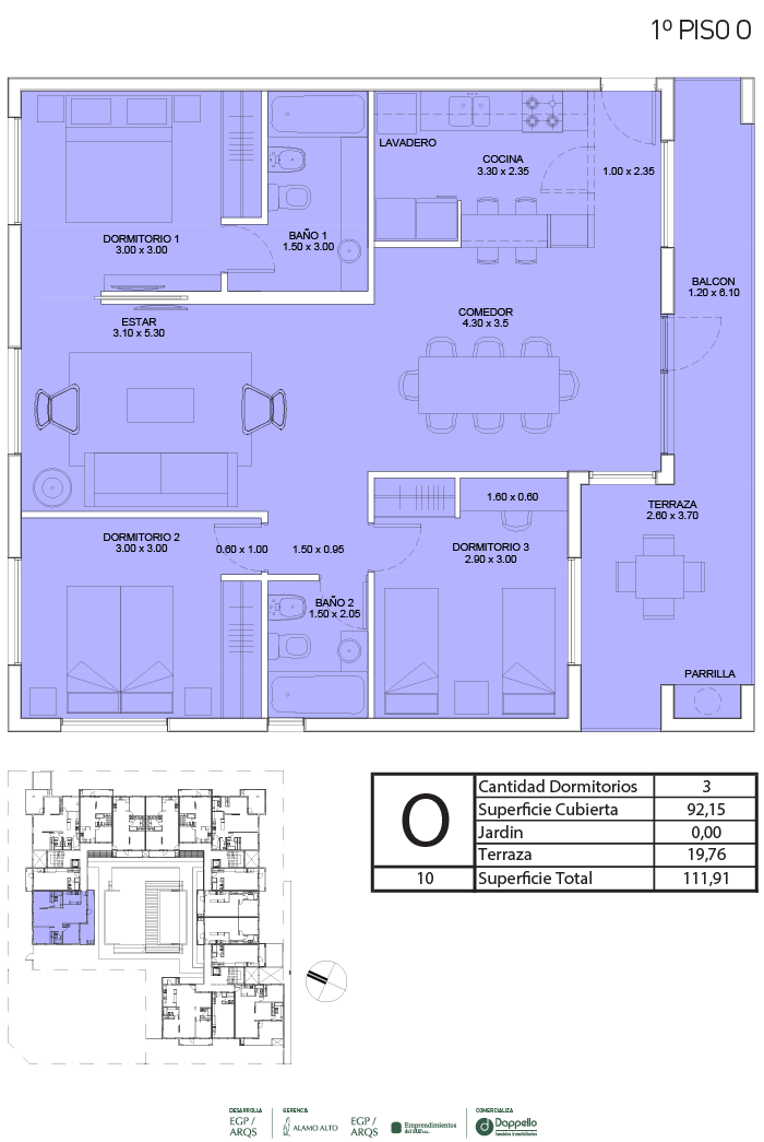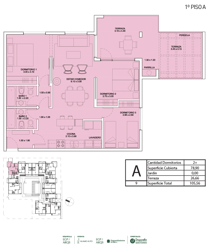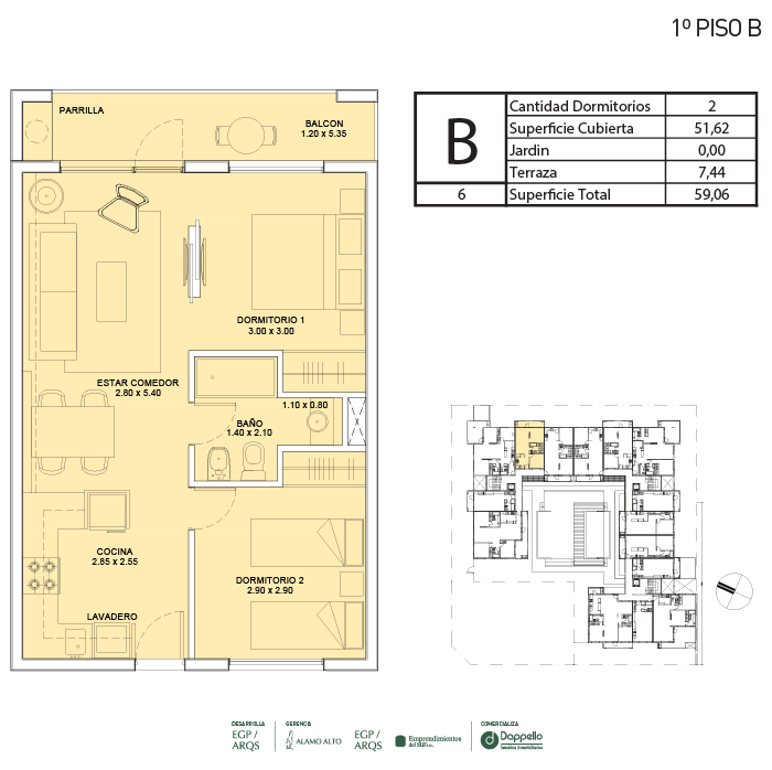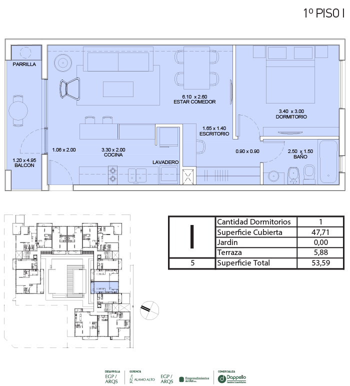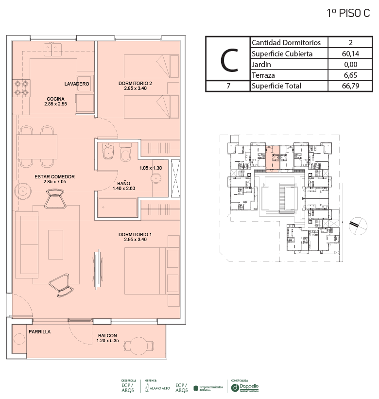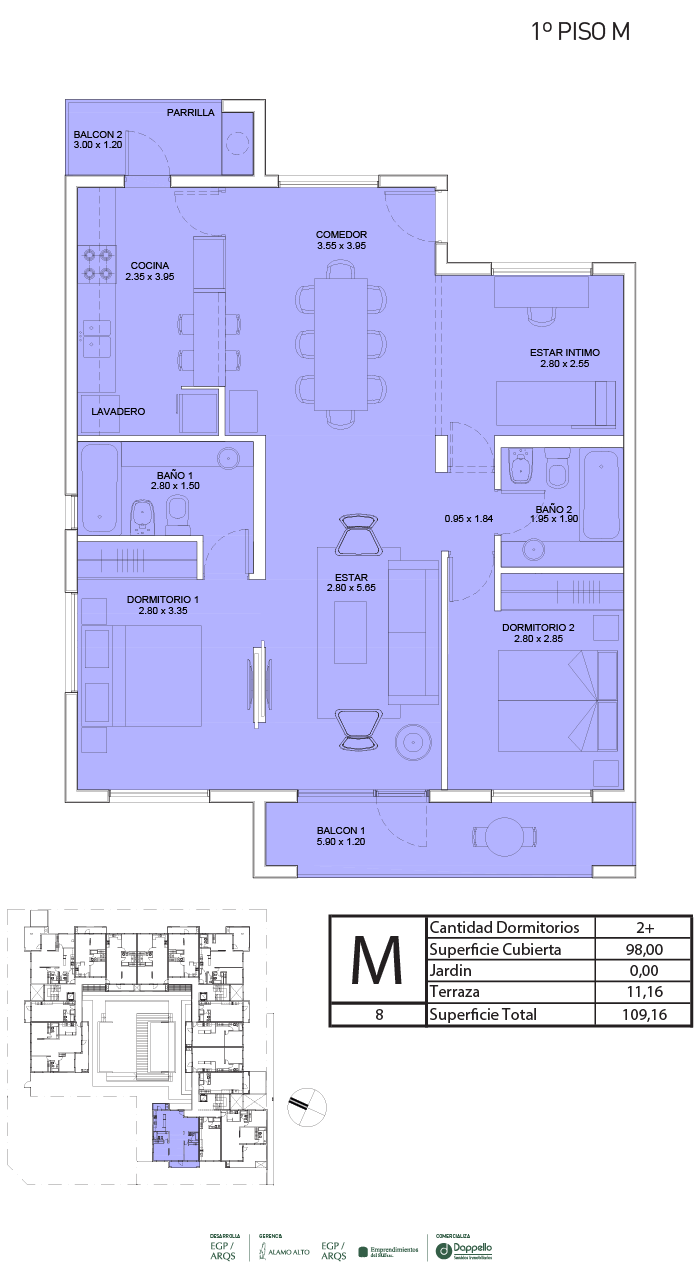 Las plantas superiores del edificio, en este caso PRIMER Y SEGUNDO PISO, permiten vistas pasantes y en todas las orientaciones separándose de los vecinos en todo el perímetro.