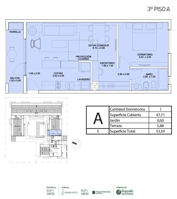 Un TERCER PISO extraordinario se ha resuelto para responder a las necesidades urbanísticas del Municipio, resultando tres unidades con las mejores visuales del edificio.