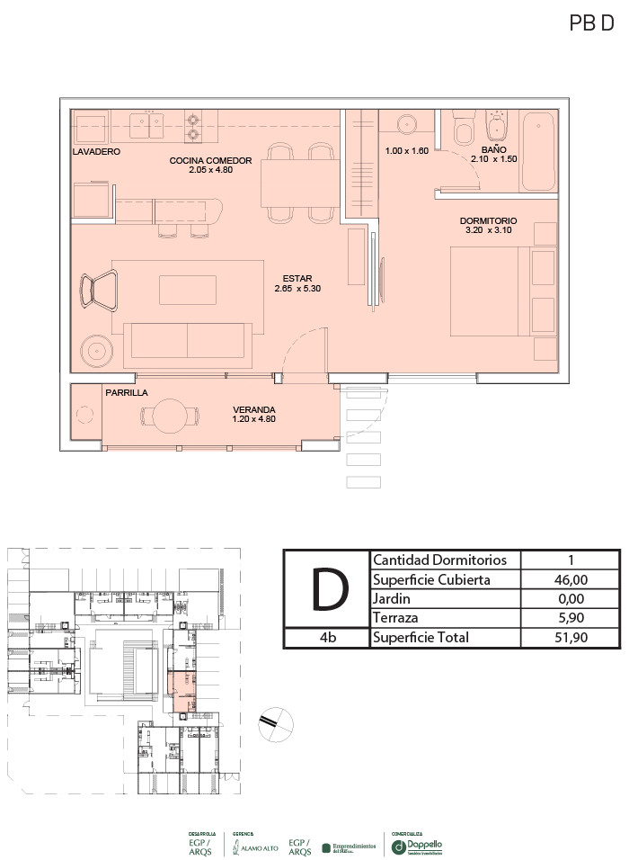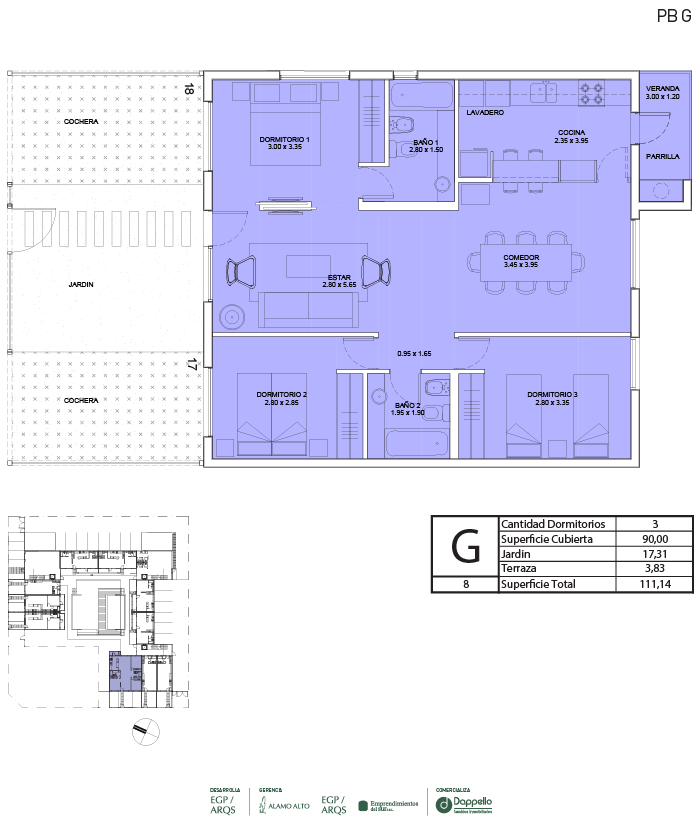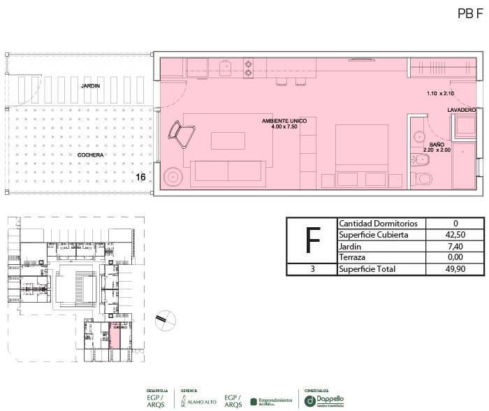 La PLANTA BAJA del edificio se destaca por caracterizar y definir claramente la apropiación de cada espacio del proyecto. Desde la entrada principal, con ingreso por calle Calderón, se llega a un jardín central con pileta climatizada, que articula y distribuye a las unidades interiores. Las galerías y jardines privados separan el interior de las viviendas de planta baja del espacio público.